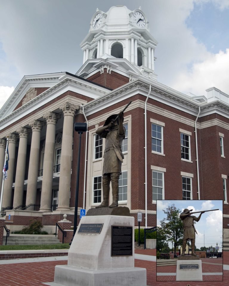 When viewing the sculpture, Lt. Brank’s rifle is oriented so that it is aiming toward the battlefield in Louisiana. Also, located near the monument is a display with a map of the battle and other interesting facts. You can also make an additional stop while in Greenville to complete the Lt. Ephraim Brank Trail. Lastly, pay your respects to the war hero by visiting his gravesite located on court row behind the Greenville City Hall.